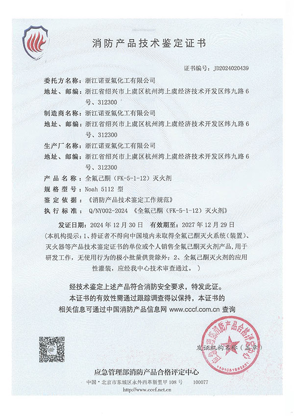 消防产品技术鉴定证书